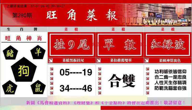 280期单【猪牛羊兔】 双 【虎鼠马狗】开鼠42准