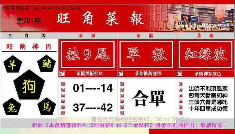 281期⑨肖╠蛇鼠马狗龙牛虎猪兔╣开:羊47错