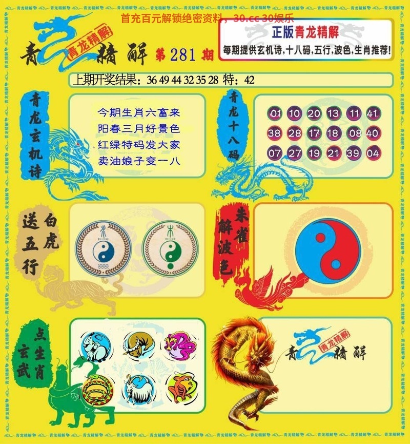 281期单【蛇牛猪羊】 双 【马猴狗龙】开羊47准